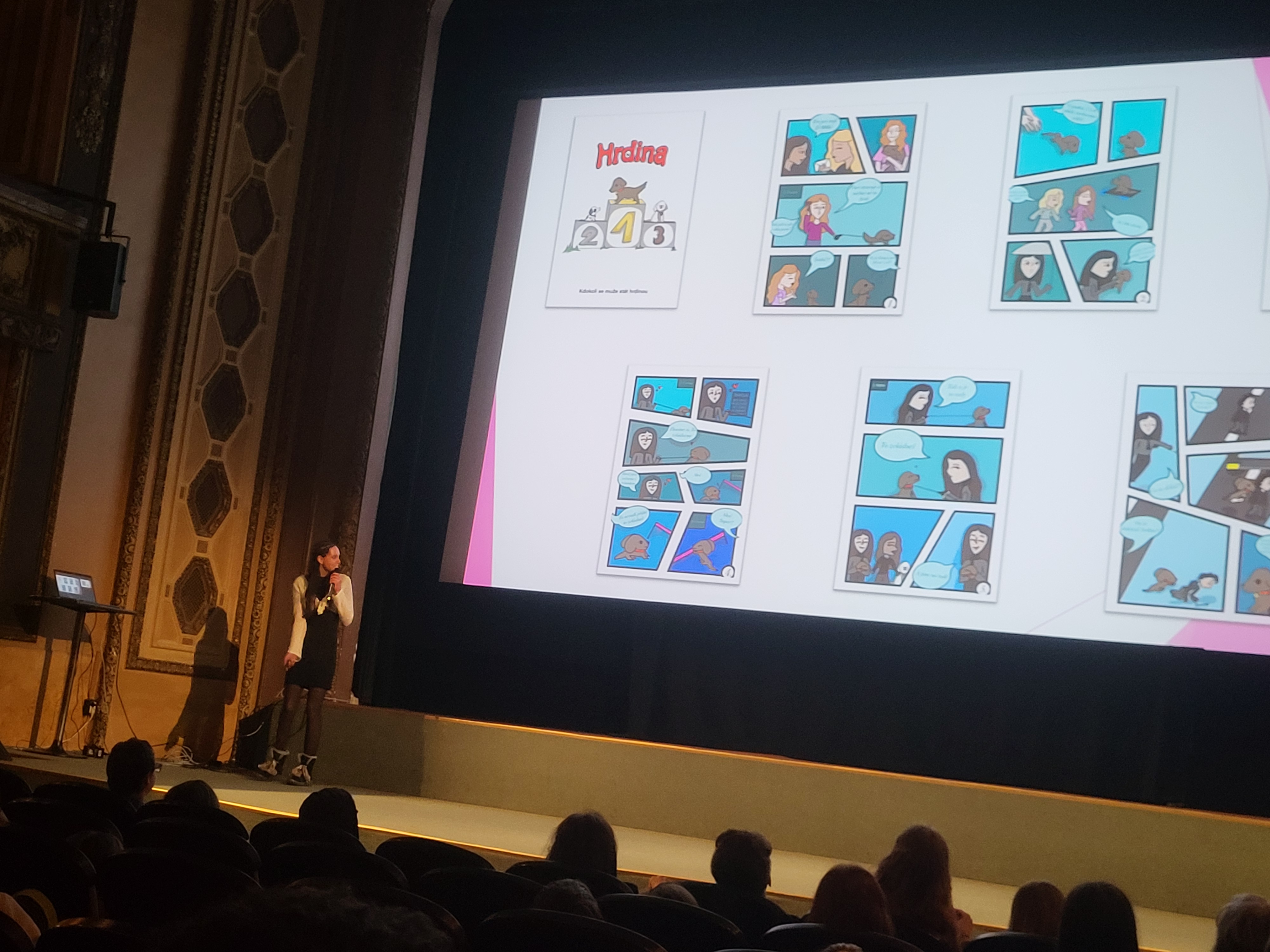Year 2025At Lucerna Cinema, I presented my comic created in Procreate. Speaking on stage with a microphone was a step beyond my comfort zone, but it became a truly empowering experience.