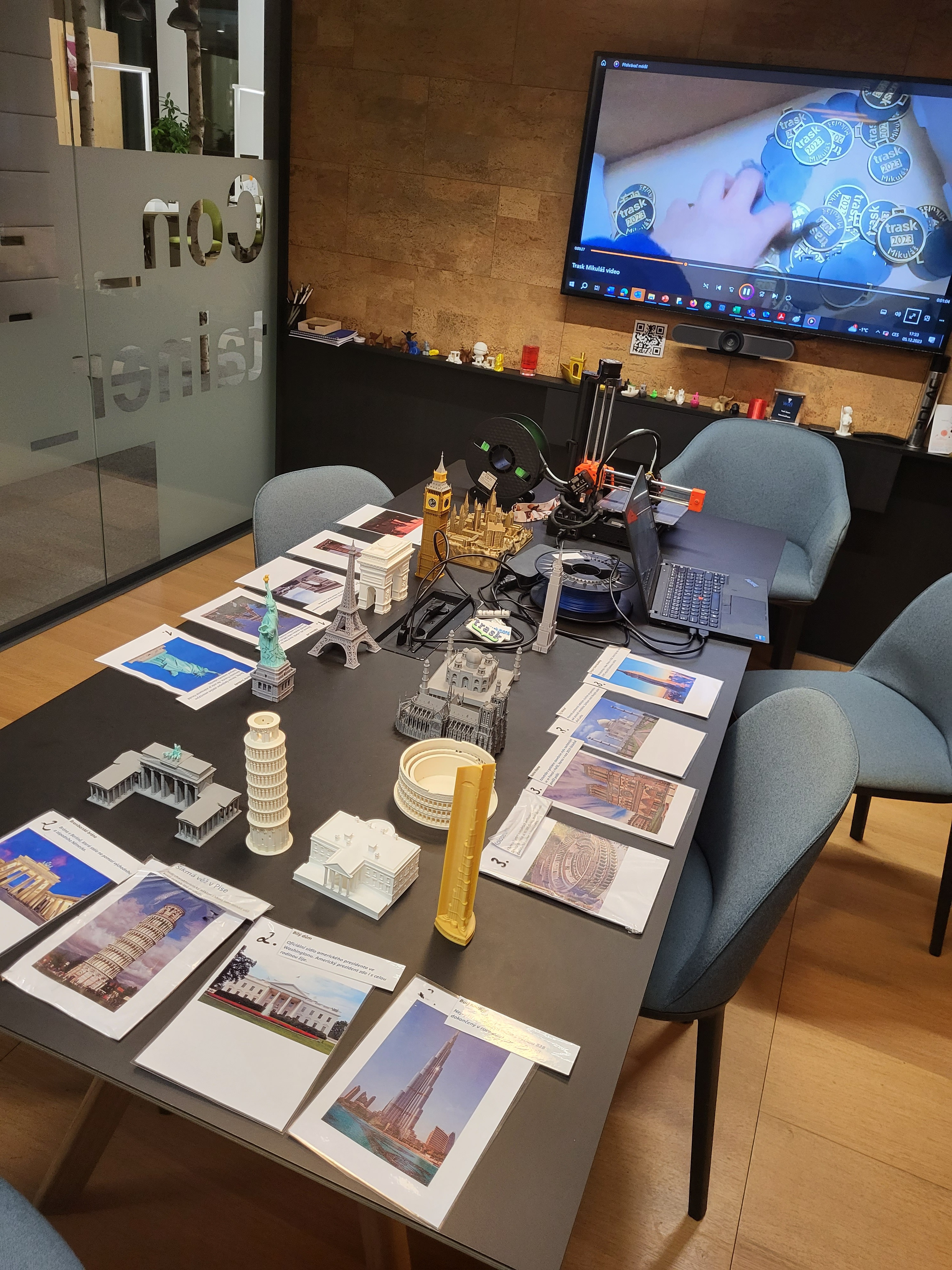 Year 2023Together with my brother we organized a 3D printing workshop for 150 children of Trask solutions a.s. employees. Educational competitions were prepared for the children (recognizing well-known buildings). Each child received a sculpted and printed medal.